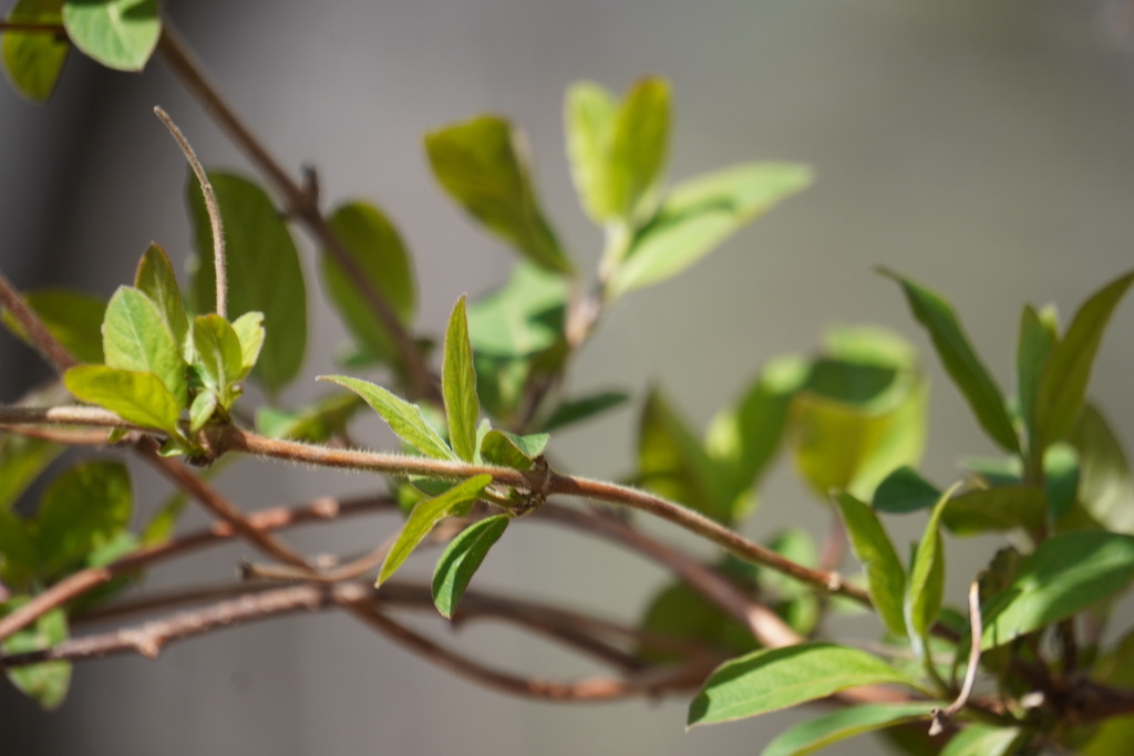 | new shoots or vigorous growth of honeysuckle often have clustered-looking leaves, making it hard to see that they are opposite. |